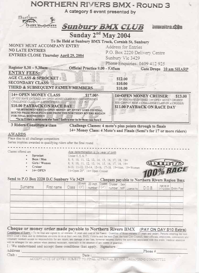29/04 Sunbury Entry form