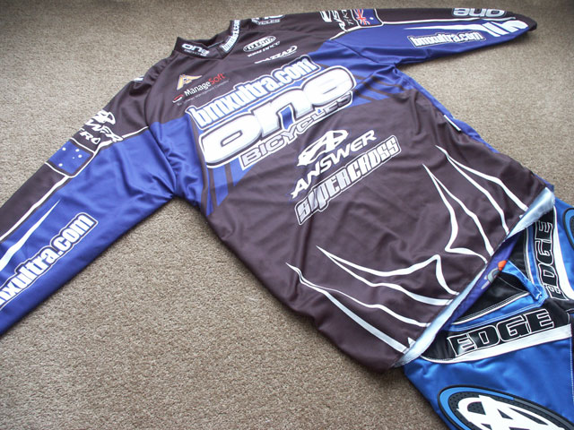 The jersey will be worn by Shane Jenkins in the A Pro class at the ACT Titles in Aus this weekend. And, if all goes well with the US postal service, 30-34 Expert rider Jason Bergstrom will be wearing his at the Morristown, TN indoor national this weekend.