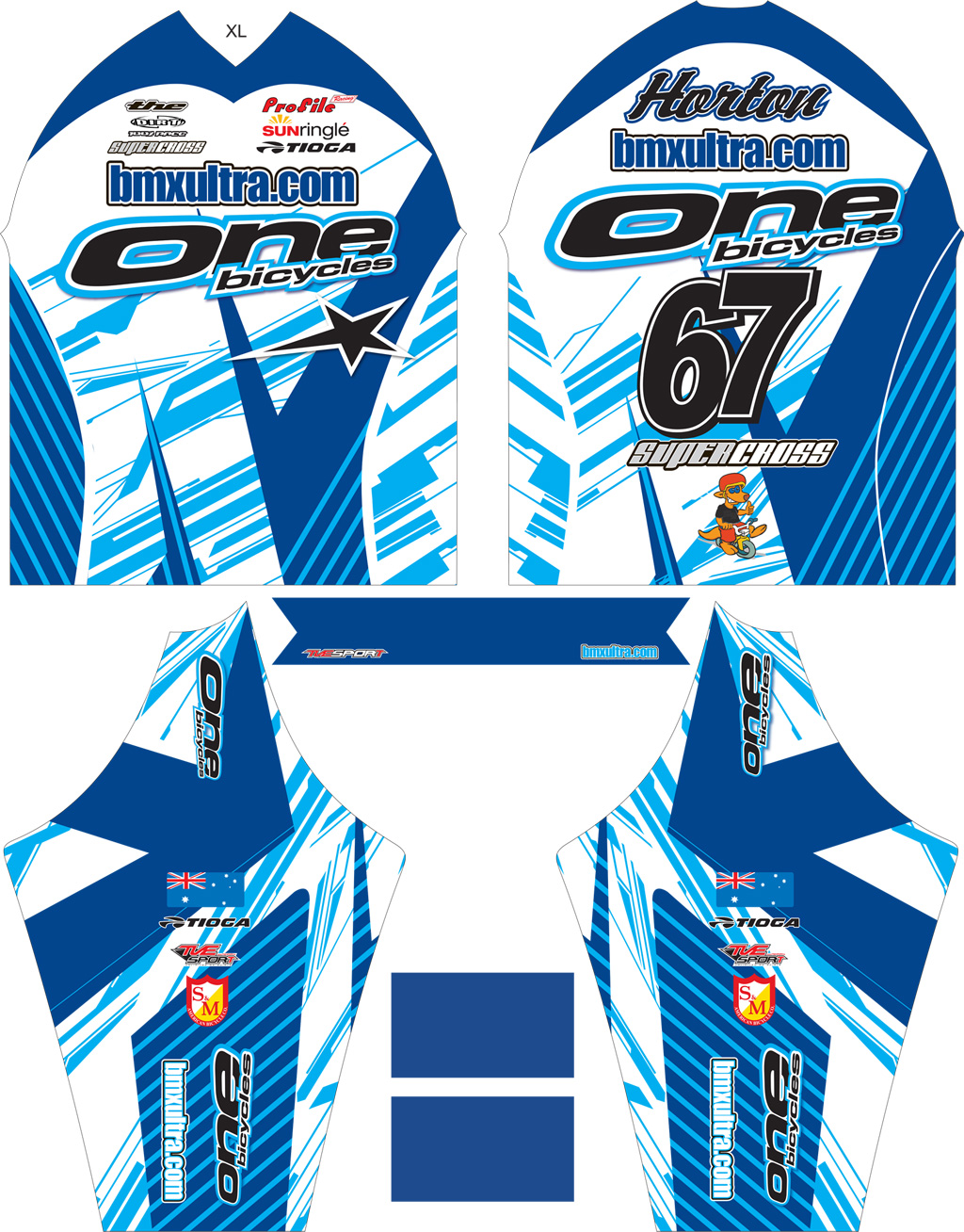 2010 is just about over and it's time to start looking at the 2011 season. The bmxultra.com/One Bicycles team roster has been locked in for a couple of weeks, and now the jerseys are too. You should see the team riders in their jerseys early in the new year. Replica jerseys will also be available to purchase soon! You can customise yours with your own country flag, name and number across the back.