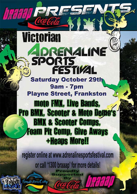 The Adrenaline Sports Festival is having a display of pit bikes, scooters and bmx bikes this Saturday October 29.
