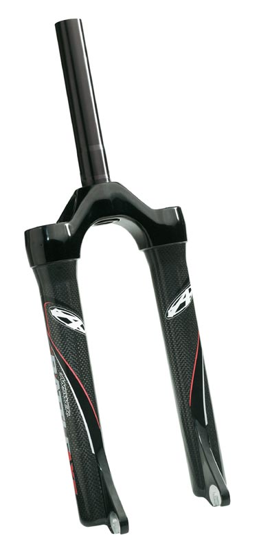 The Battleaxe uses carbon fiber legs which, as you should know, is extremely light but unlike the Mag forks these do not require reinforcing to give them the strength and stiffness. That's right the legs are not reinforced, however, the dropouts are 6061 aluminum and are internally molded to the leg. This is much stronger than any other method of attaching the dropouts. Stronger than welded steel, bonded aluminum, and even 1 piece designs.