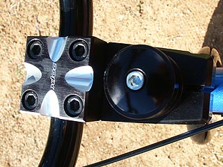 The Tangent X Loc stem is high quality race stem machined from 6061 aluminium. It has some nice CNC'd styling that not only makes the stem look good but shaves some weight as well. Since this is a 4 year old design it's hard to compare it to other products designed more recently to reduce weight to an absolute minimum, but if you are looking for the lightest stem on the market and like the looks of they Tangent X Loc stem you will either need to compromise on the weight gain or look else where. That said I would certainly have to rate the looks of the X Loc up amongst the better looking stems in the bunch, and stiff? Well I haven't been able to make it budge, not one bit. It's as stiff as you would expect your stem to be, which means that you won't be losing any power winding up down the start hill our out of corners (that's right folks not all your power comes through your cranks).